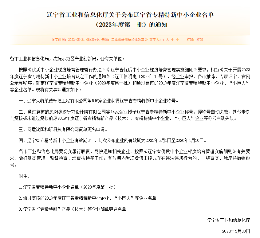 Congratulations on our company being awarded the title of Liaoning Province Specialized, Refined, and New Small and Medium Enterprise!